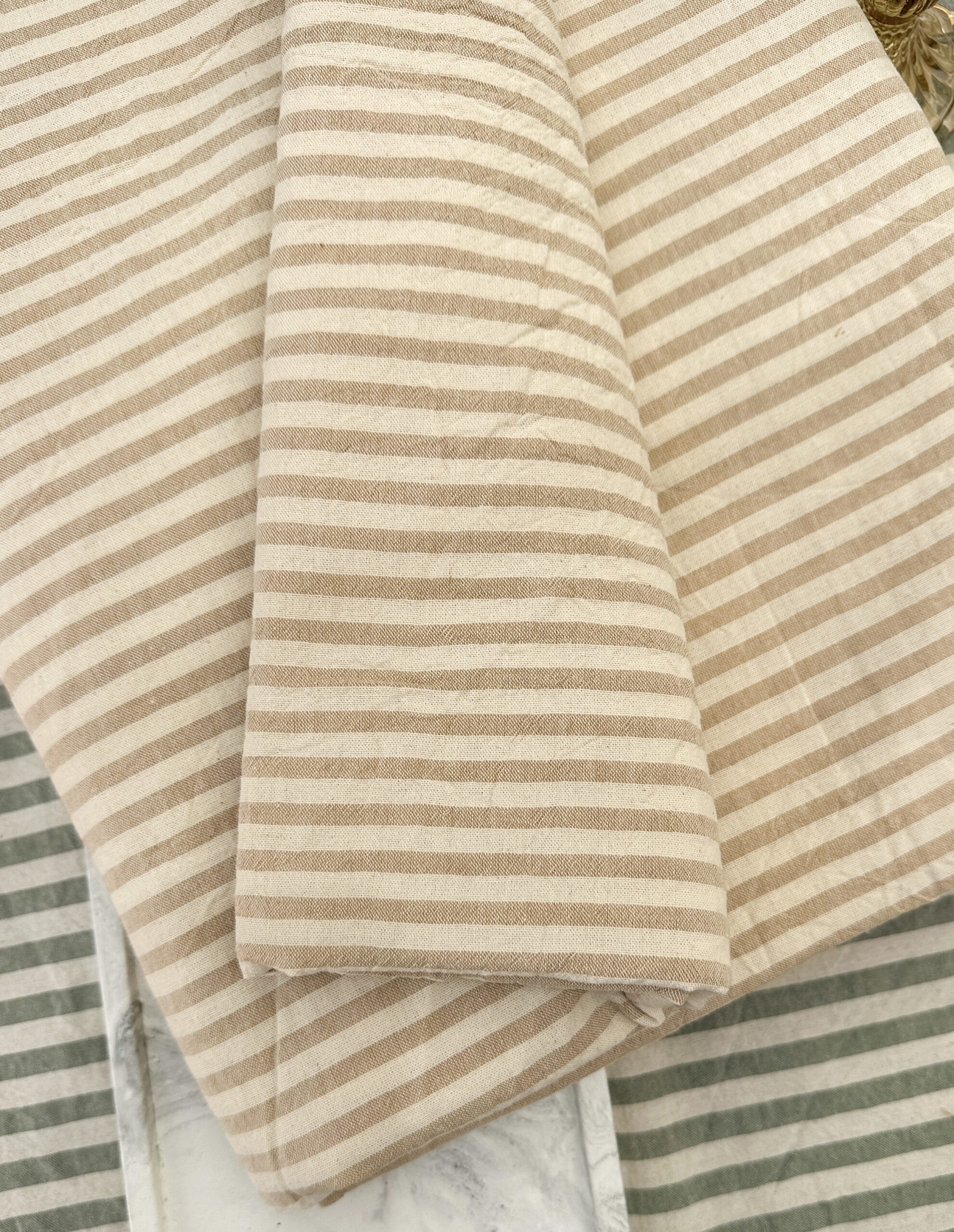 Nuestro mantel a rayas en tono arena es esa pieza simple y linda que eleva cualquier mesa. Con tejido suave, caída natural y un diseño atemporal, combina perfecto con vajilla neutra, vidrio y madera. Ideal para uso diario o para armar mesas cálidas y relajadas.