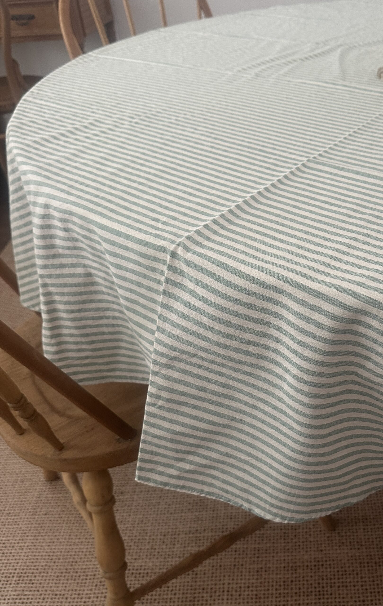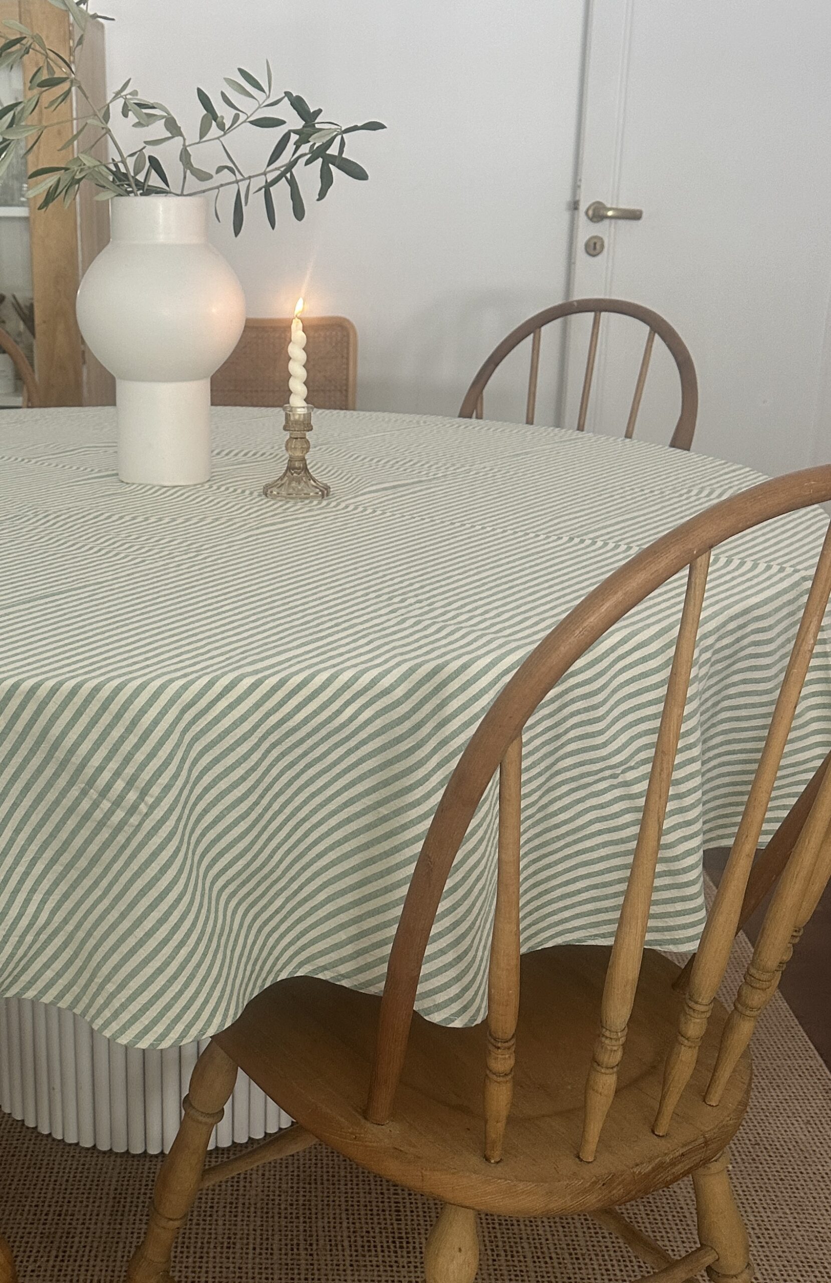 Un clásico renovado: mantel verde rayado, con líneas que dan ritmo y un color que combina con maderas, fibras y vajilla blanca. Perfecto para mesas que se sienten vivas y llenas de estilo.