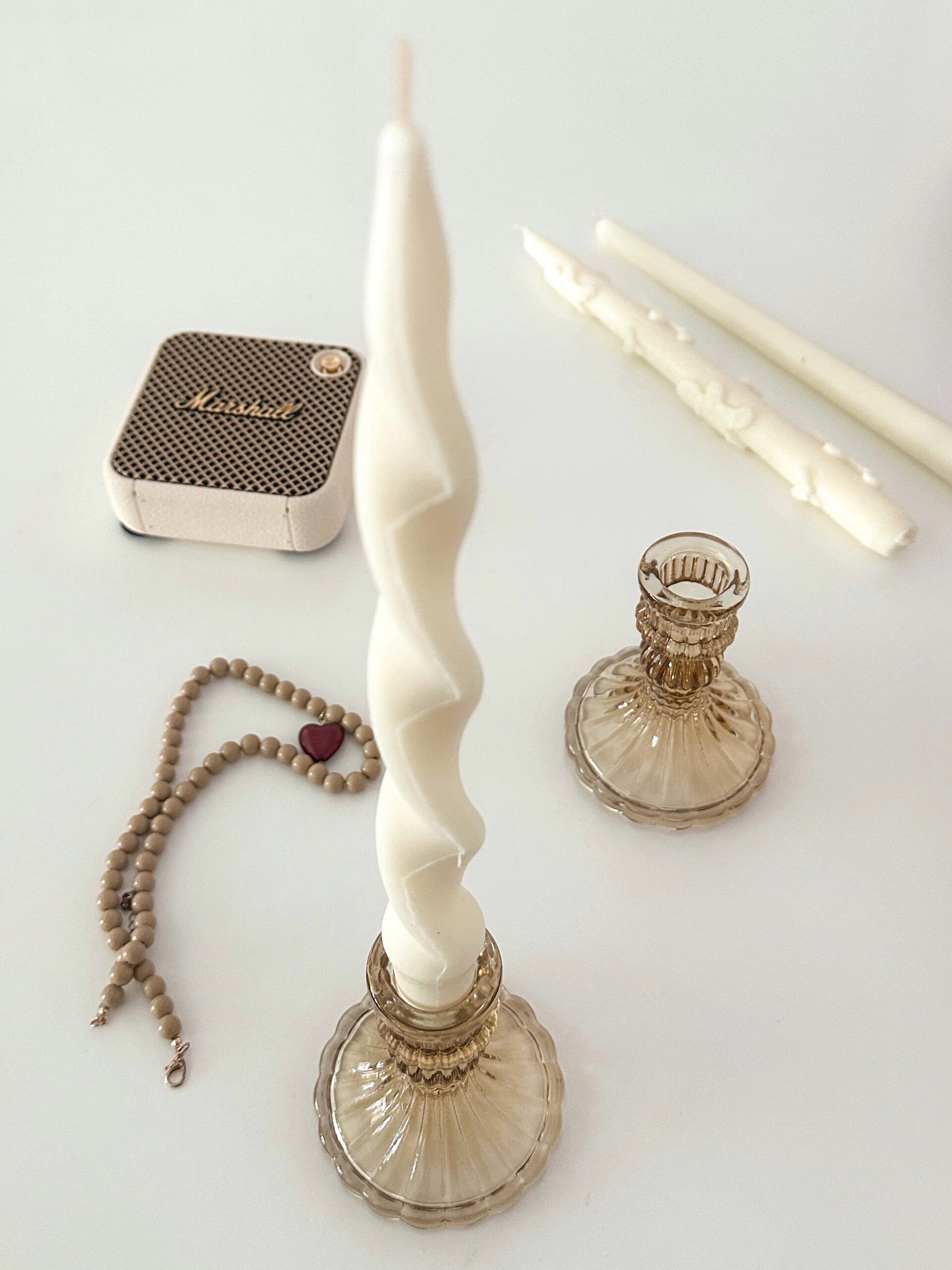 Vela ondulada blanca para candelabro.